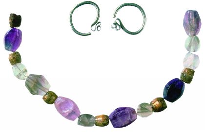 fluorit és üveggyöngyök,